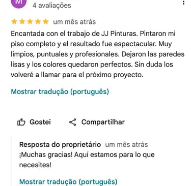 ✔ Profesionalismo – Leni Junior, pintor responsable de JJ Pinturas, cuenta con una amplia experiencia en el sector, ofreciendo un servicio ágil y eficiente.